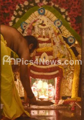 Photo Caption : Priest performing pooja to Lord Shiva at Kadumalleshwara Temple on the occasion of Mahashivaratri festival, in Bengaluru on Monday 4th March 2019