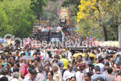 Photo Caption : Devotees participated in Rathotsava of Kadumalleshwara Temple on the occasion of Mahashivaratri, in Bengaluru on Tuesday 5th March 2019