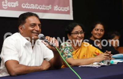 Photo Caption : Actor and Politician Prakash Raj with K Uma, State Secretary SUCI (C), Rama T, Vice President, AIUTUC and others during International Womens Day celebrations organised by AIMSS at UVCE Hall, in Bengaluru on Friday 8th March 2019