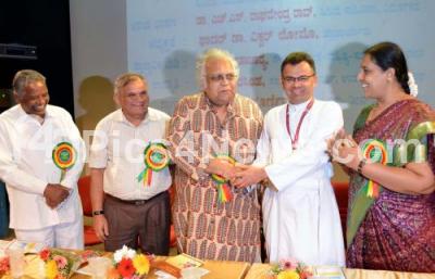 Senior Writer Dr HS Shivaprakash Fr Dr Victor Lobo, Dr Na Geethaacharya, M Narasimha and Dr BN Poornima during a seminar "Sahitya Oodu" at St Joseph College, in Bengaluru on Tuesday 12th March 2019