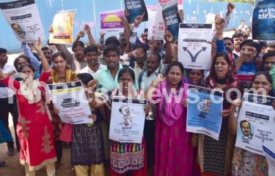 Photo Caption : Members of Vidhyarthi Bandutva Vedike Karnataka protesting to fulfill their various demands at Freedom Park, in Bengaluru on Wednesday 13th March 2019
