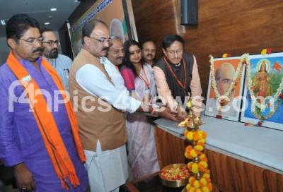 Photo Caption : Karnataka State BJP leaders Arvind Limbavali, R Ashok, MP Rajeev Chandrashekhar and others seen at the inauguration of the Lok Sabha Election 2019 BJP media workshop at BJP Office, in Bengaluru on Thursday 14th March 2019