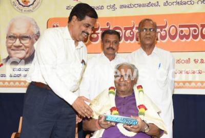 Photo Caption : Prof CNR Rao being felicitated by Dr Manu Baligar, President Kannada Sahitya Parishat during an Interaction program at Kannada Sahitya Parishat, in Bengaluru on Saturday 23rd March 2019