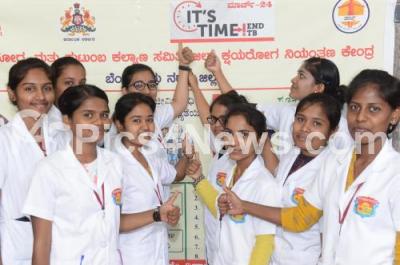 Photo Caption : Students during "World TB Day" organised by Health and Family Welfare Dept at Bengaluru Medical College, in Bengaluru on Sunday 24th March 2019