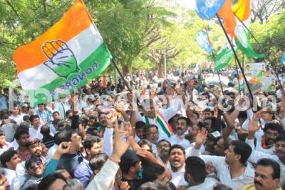 Photo Caption : BK Hariprasad Congress Lok Sabha Candidate from Bangalore South filing his nomination for Lok Sabha Elections with congress leaders and congress supporters at Jayanagar, in Bengaluru on Tuesday 26th March 2019