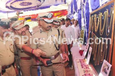 Photo Caption : Police Commissioner T Suneel Kumar and Police officers inspecting recovered two wheeler and jewellery during property parade at CAR parade grounds, Mysore Road, in Bengaluru on Tuesday 26th March 2019