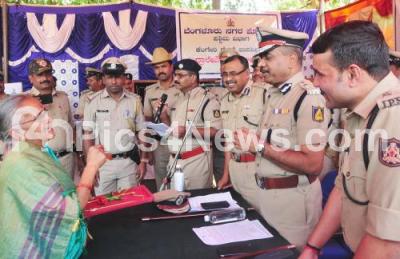 Photo Caption : Police Commissioner T Suneel Kumar interacting with public during property parade at CAR parade grounds, Mysore Road, in Bengaluru on Tuesday 26th March 2019