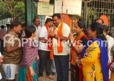 Photo Caption : BJP Bengaluru Rural Loka Sabha candidate Ashwath Narayana with his supporters campaigning at JP Park, Mathikere, in Bengaluru on Friday 29th March 2019