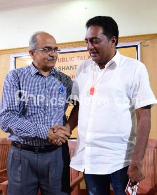 Lawyer Activist Prashant Bhushan speaks as Bengaluru Central Independent Candidate Prakash Raj during a public talk on "Reclaiming the Republic Manifesto" at Press Club, in Bengaluru on Saturday 30th March 2019