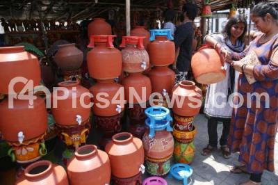 Event Description : People buying mud pots at Nagarabhavi, for cooling the water in the blazing Summer, in Bengaluru on Sunday 31st March 2019