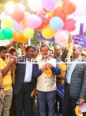 Photo Caption : Chief Electoral Officer of Karnataka Sanjeev Kumar with Police Commissioner T Suneel Kumar, Special Election officer Manjunath Prasad and volunteers participate in vote awareness campaign at Cubbon Park, in Bengaluru on Sunday 31st March 2019