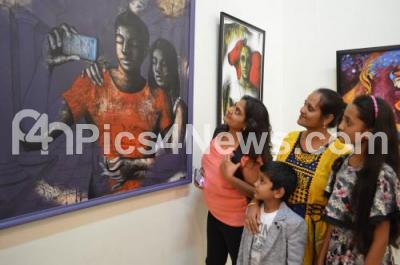 Visitors admiring the “Art Spring 2019”, An exhibition of Art Works at Chitrakala Parishat, in Bengaluru on Monday 1st April 2019