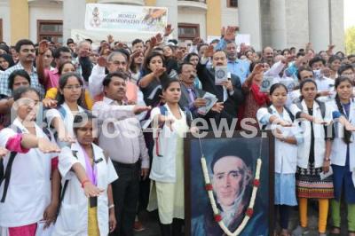 Photo Caption : Sanjiv Kumar, IAS, with Meenakshi Negi, IFS, Nadoja Dr BT Rudresh and others administered electoral oath taking on the occasion World Homeopathy Day at Town Hall, in Bengaluru on Wednesday 10th April 2019