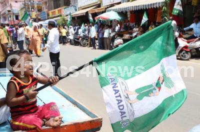 Photo Caption : A kid holding JDS party flag during Lok Sabha election campaign of Congress Bengaluru North Lok Sabha candidate Krishna Byre gowda at Mahalakshmi Layout assembly constituency, in Bengaluru on Thursday 11th April 2019