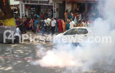 Photo Caption : Crackers being bursted during Congress Bengaluru North Lok Sabha candidate Krishna Byre Gowda campaign at Mahalakshmi Layout assembly constituency, in Bengaluru on Thursday 11th April 2019