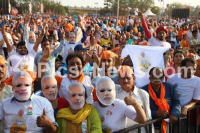 BJP supporters gathered at the Lok Sabha Election Rally at Palace Grounds, in Bengaluru on Saturday 13th April 2019