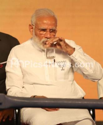 Photo Caption : PM Narendra Modi seen at the BJP Lok Sabha Election Rally at Palace Grounds, in Bengaluru on Saturday 13th April 2019