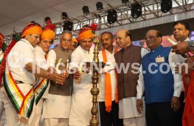 Photo Caption : MP PC Mohan and MLC Lehar Singh and others inaugurating the Mahaveer Jayanti celebration at Freedom Park, organised by Jain Yuva Sangathan, in Bengaluru on Wednesday 17th April 2019