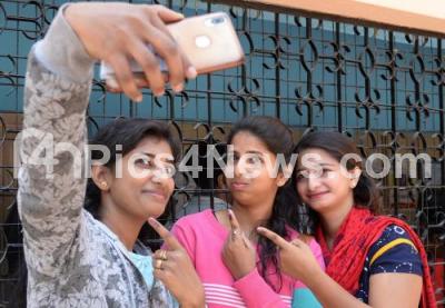 Photo Caption : Girls display the indelible ink mark on their finger after casting their vote for the Lok Sabha election at Cock Burn School, Shivajinagar, Bengaluru Central Lok Sabha constituency, in Bengaluru on Thursday 18th April 2019