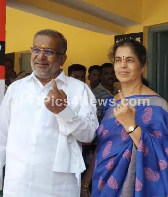 Photo Caption : Minister GT Devegowda and his wife cast their vote for the Lok Sabha election, in Bengaluru on Thursday 18th April 2019