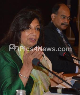 Photo Caption : Kiran Mazumdar Shaw, Chairperson, Biocon Limited with others addressing the FICCI National Executive Committee Meeting at Hotel ITC Windsor, in Bengaluru on Monday 22nd April 2019