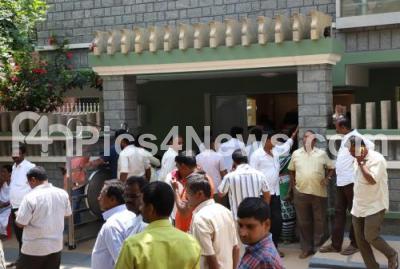 Photo Caption : People gathered outside the house of JDS worker, KG Hanumantharayappa at T Dasarahalli, who died in the serial blasts in Srilanka , in Bengaluru on Monday 22nd April 2019