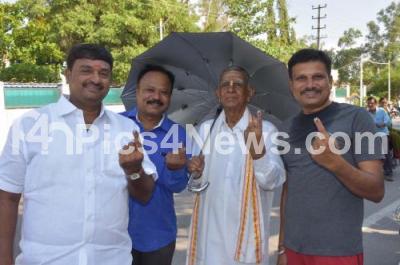 Photo Caption : People seen flaunting their ink marked fingers after casting her votes 3rd phase Lok Sabha Elections in Raichur on Tuesday 23rd April 2019
