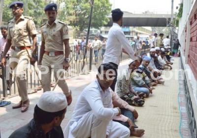 Photo Caption : Police security at Jamia Masjid KR Market during the Friday prayer, in Bengaluru on Friday 26th April 2019