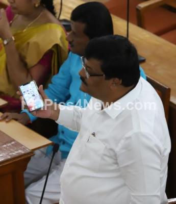 Photo Caption : Opposition Council leader Padmanabha Reddy seen addressing during the BBMP Council Session at BBMP Head Office, in Bengaluru on Saturday 27th April 2019