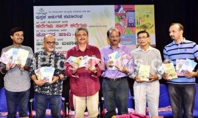 Writer Jayanth Kaikini releasing "Karegalu Sar Karegalu" , "Hamara Bazaz" , "Zambli Tuvalu" with S Surendranath, Harish Kera , Book authors H Dumdiraj, GP Basavaraju, Vikrama Hatwar and others at Indian Institute of World Culture, in Bengaluru on Sunday 28th April 2019