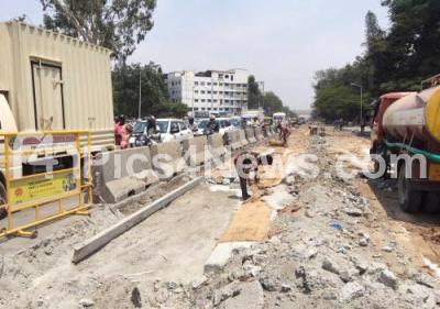 Vehicles moving slow due to white topping at Hosur road, in Bengaluru on Sunday 28th April 2019
