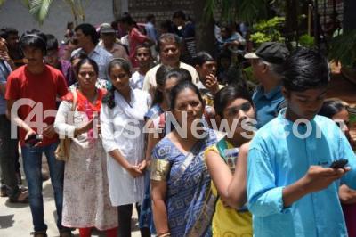 Photo Caption : SSLC passed out students with parents seen standing in a queue to collect the PUC admission forms at MES College, Malleshwaram, in Bengaluru on Thursday 2nd May 2019