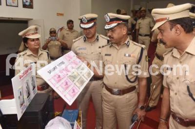 Photo Caption : Police Commissioner T Suneel Kumar and other Police officials inspecting recovered fake currency during property parade press conference at Police Commissioner Office, in Bengaluru on Friday 3rd May 2019