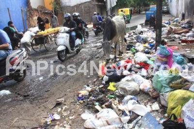 Photo Caption : Garbage piled up at Thimmaiah road, Shivajinagar, in Bengaluru on Sunday 5th May 2019