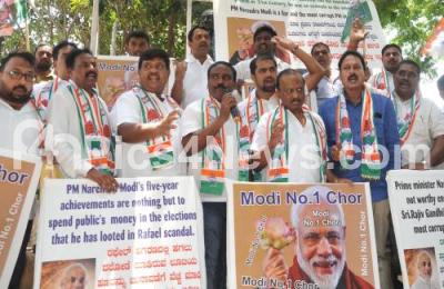 Photo Caption : Congress workers staged a protest against PM Narendra Modi, for his remarks on Former PM Rajeev Gandhi, the protest was held at Gandhi Statue, in Bengaluru on Monday 6th May 2019