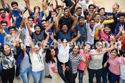 10th CBSE students of Venkat International Public School seen celebrating after the 10th CBSE results were announced today, in Bengaluru on Monday 6th May 2019