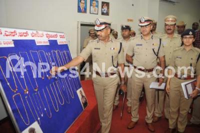 Photo Caption : Police Commissioner T Suneel Kumar, ACP Seemanth Kumar Singh, DCP Ishanth and police officials inspect the recovered jewellery during a press conference at Police Commissioner Office, in Bengaluru on Wednesday 8th May 2019
