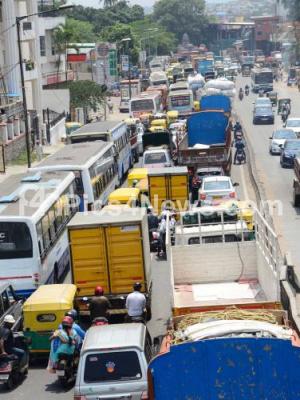 Traffic Jam at Azad Nagar on Mysore Road