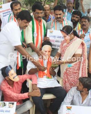 Members of Bengaluru Youth Congress protesting against BJP leaders Shobha Karandlaje and Renukacharya, the protest was held at Anand Rao Circle, in Bengaluru on Thursday 16th May 2019
