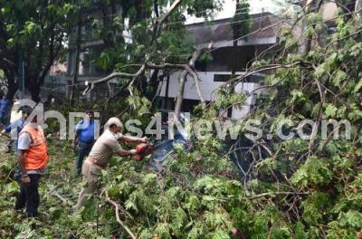 Photo Caption : Tree uprooted at Jayanagar 7th Block due to heavy rains in Bengaluru City, in Bengaluru on Friday 17th May 2019