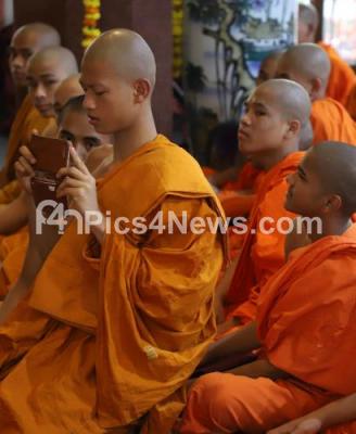 Photo Caption : Buddhist Monks seen during the Buddha Jayanti celebrations at Maha Bodhi Society, Gandhi Nagar, in Bengaluru on Saturday 18th May 2019