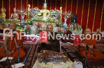 Photo Caption : Venerable Bhikkhu Ananda, General Secretary Maha Bodhi Society Bengaluru with Ven Dr Varasambodhi Maha Thera, Vice President Maha Bodhi Society of India, Bodhgaya with Ven Pamokkha Thera, Senior Teacher Maha Bodhi Monistic Institute releasing a book on Lord Buddha on the occasion of Buddha Jayanti celebrations at Maha Bodhi Society, Gandhi Nagar, in Bengaluru on Saturday 18th May 2019