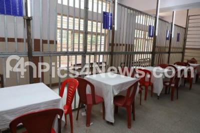 Photo Caption : Lok Sabha Election counting centres being prepared for the Lok Sabha Election Results to be announced tomorrow at Mount Carmel College, in Bengaluru on Wednesday 22nd May 2019