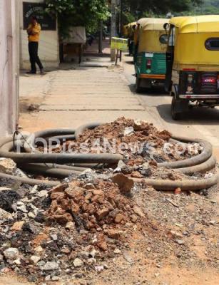 Huge cables are left unattended and have been causing problems to the people walking on footpaths at Mount Carmel College, Vanasanthnagar, in Bengaluru on Wednesday 22nd May 2019