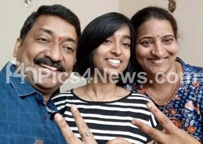 Photo Caption : Sai Saketika Chekuri, seen celebrating with her parents, after securing 1st Rank in Pharmacy and 3rd Rank in Engineering in CET, as the CET 2019 results were announced today, in Bengaluru on Saturday 25th May 2019