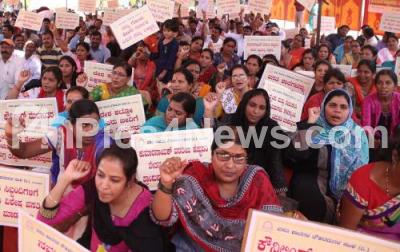 Photo Caption : Members of Boarding School Employees Association staged a protest to fulfill their various demands at Freedom Park, in Bengaluru on Monday 27th May 2019