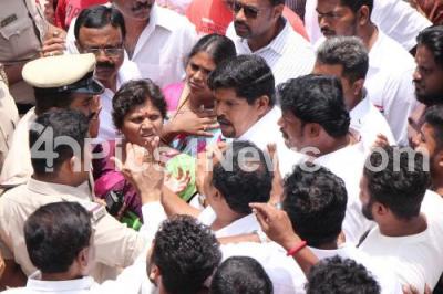Photo Caption : BJP Councilor Umesh Shetty with BJP Supporters arguing with police during BBMP Cauvery Pura Ward By Election, in Bengaluru on Wednesday 29th May 2019