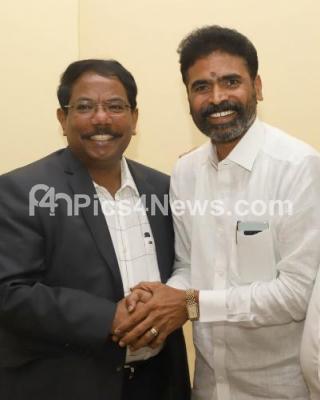 Photo Caption : Newly elected Lok Sabha member and BBMP Councilor Muniswamy being greeted by BBMP Commissioner Manjunath Prasad at BBMP office, in Bengaluru on Thursday 30th May 2019