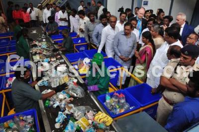 DCM Dr G Parameshwar with Mayor Gangambike Mallikarjuna and others inspected the at waste segregation centre during the MoU signing program with Netherland delegation at Marappanapalya, in Bengaluru on Friday 31st May 2019