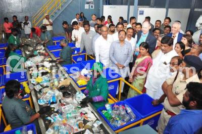 Photo Caption : DCM Dr G Parameshwar with Mayor Gangambike Mallikarjuna and others inspected the at waste segregation centre during the MoU signing program with Netherland delegation at Marappanapalya, in Bengaluru on Friday 31st May 2019